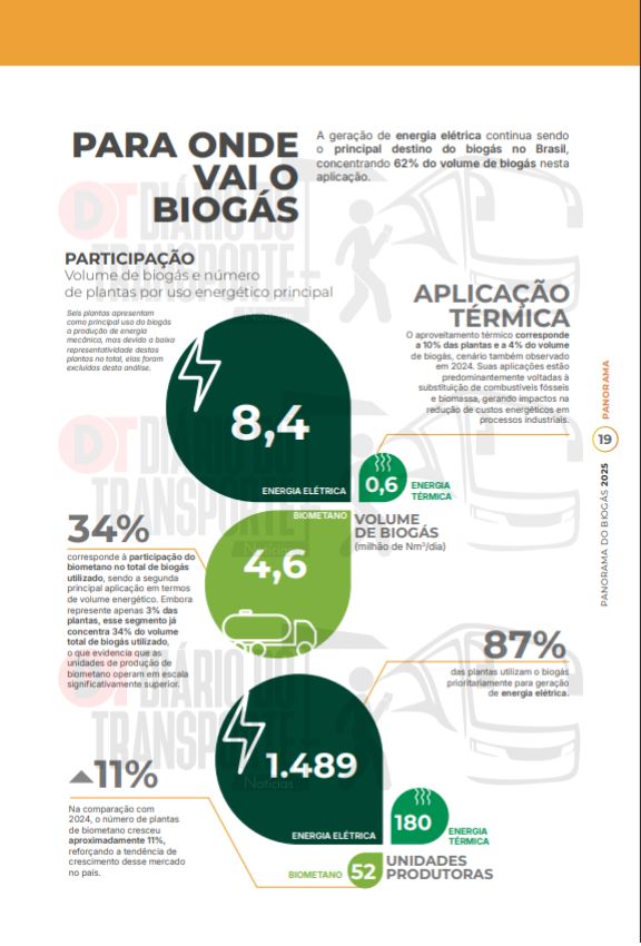 O biometano, combustível obtido na decomposição de resíduos, que é apontado como uma das alternativas para a redução das emissões de poluentes por ônibus e caminhões, entretanto, representa apenas 3% das plantas, mas já concentra 34% do volume total de biogás utilizado no Brasil. Isso significa que de 1803 unidades, 52 somente produzem biometano.