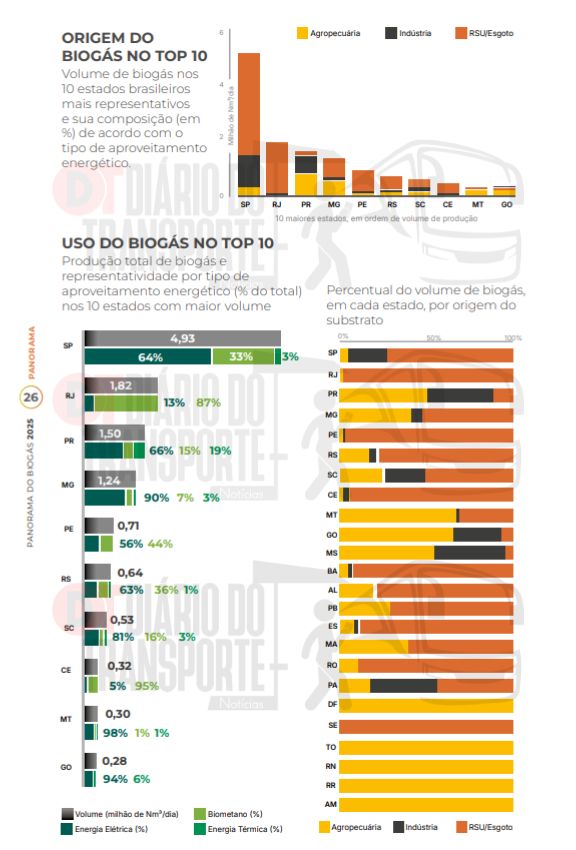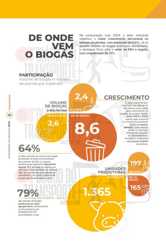 Ainda de acordo com o “Panorama 2025”, a maior parcela do volume de biogás produzido no Brasil é proveniente dos setores de resíduos urbanos ou esgoto, embora esse segmento represente apenas 10% do total de plantas em operação.