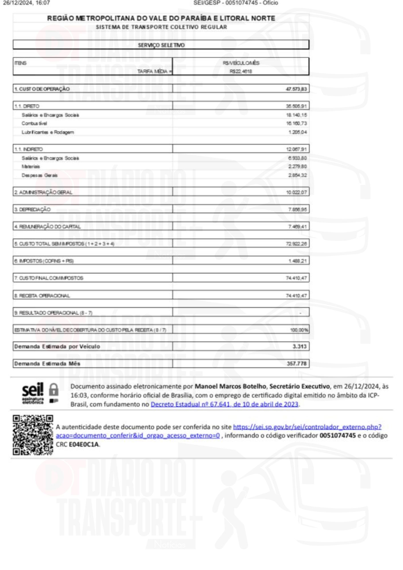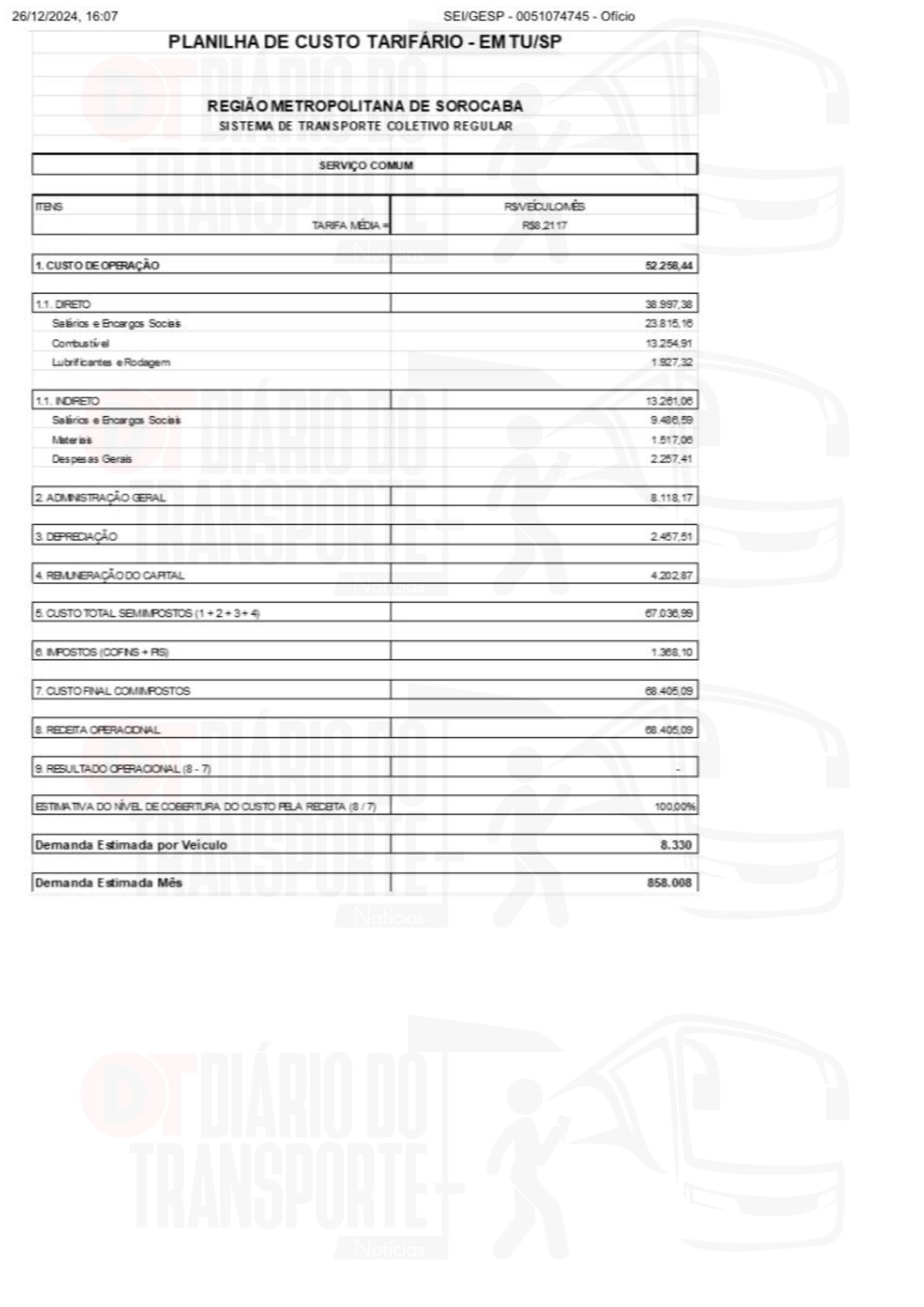 VEJA REPORTAGEM ANTERIOR: Tarifa de ônibus em São Paulo: Gestão Nunes apresenta duas possibilidades de valores – R$ 5 e R$ 5,20 em reunião do CMTT, como já havia adiantado o Diário do Transporte
