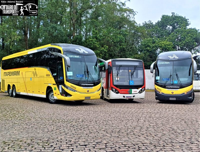 Da esquerda para a direita e de cima para baixo: Ônibus Marcopolo G8 – 1350 prefixo 60.000 em homenagem ao TRIBUS; Ônibus Marcopolo G8 – 1350 com pintura atual da Itapemirim; Ônibus Marcopolo G7 – 1200 prefixo 70.000 com pintura em homenagem aos 70 anos da Itapemirim; Ônibus de dois andares Leito-Cama com a pintura atual da Itapemiriim