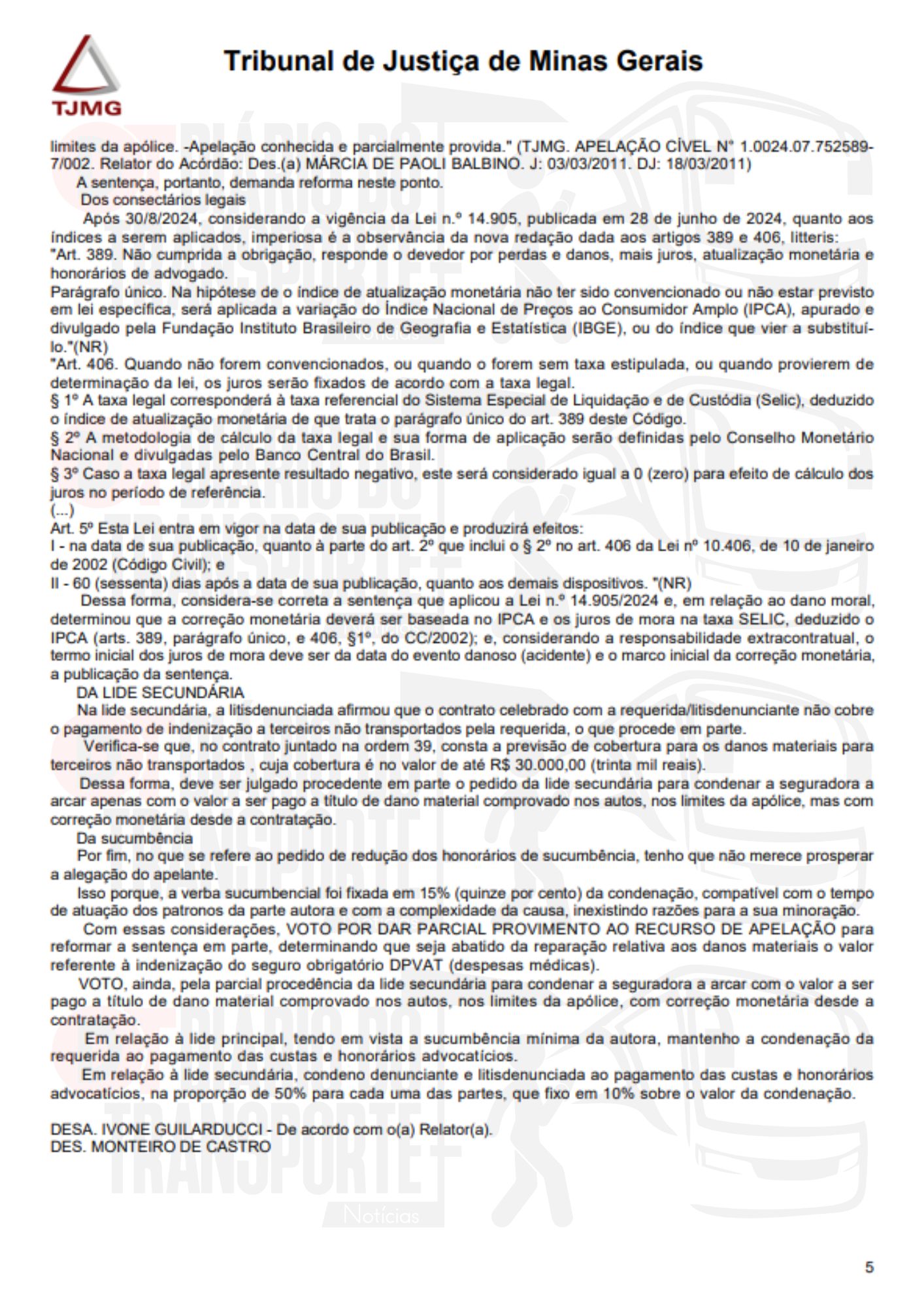 Os desembargadores Ivone Guilarducci e Monteiro de Castro acompanharam o voto do relator.