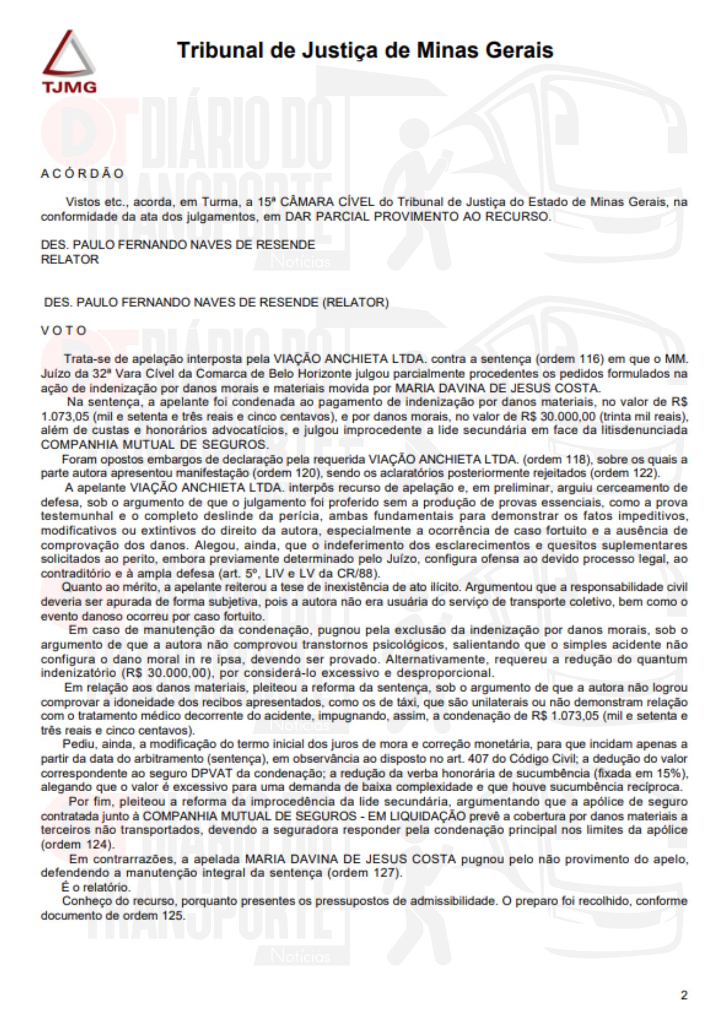 Na segunda instância, porém, a Justiça mineira decidiu permitir com que a empresa de ônibus descontasse da indenização o valor já recebido pela pedestre por meio do DPVAT (Seguro de Danos Pessoais Causados por Veículos Automotores de Via Terrestre).