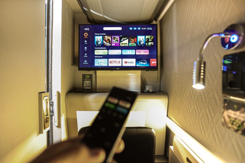 Outra usuária, Roseli, também comentou a experiência. “O espaço é totalmente funcional. Pra quem deseja privacidade e conforto em uma viagem de ônibus, atendeu muito bem. Poltrona massageadora, tv, mesa pra refeição e trabalho, coberta e travesseiro, luzes, tomada, entrada de fone, de USB, tudo adequadamente necessário para uma viagem tranquila”, afirmou.