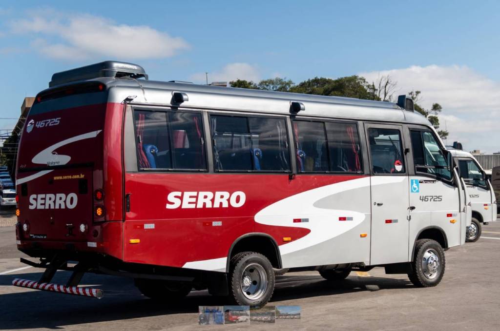 Os 16 coletivos da Viação Serro têm comprimento total de 7.420mm e estão sendo utilizados no transporte de colaboradores do setor de mineração em Minas Gerais. Os veículos contam com tração 4×4, para aplicação fora de estrada, sistema de ar-condicionado, motor Cummins de 157 cv, câmbio 6 marchas, pneus de uso misto, captação de ar do motor dutado pelo teto (snorkel), conceito estrutural R66 para maior resistência da estrutura a capotamentos, e kit “mineração”, com proteção adicional chicote do chassi, protetores de radiador, de cárter, do tanque de combustível, vedação anti-pó e isolamentos térmicos reforçados.